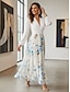 Femmes Robe Longue Maxi Robe Robe Décontractée Robe en Chiffon Robe Fleurie Élégant Mode Romantique Extérieur Fête Date Coupe régulière Fleur manche longue Col en V Bleu Blanche Été Printemps