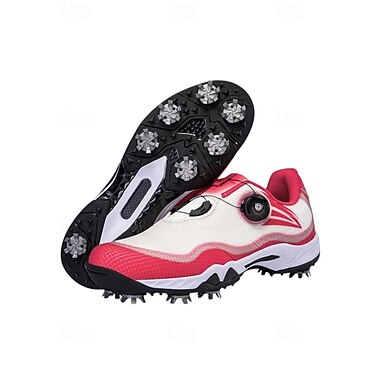 Chaussures de golf rouges et blanches pour hommes, avec absorption des chocs, confortables pour le golf et les modes de vie actifs.
