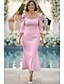 Sirène Trompette Longueur thé Robe de Soirée Robe de Cocktail Robe d'invité de mariage Robe de Mère de Mariée Manche 3/4 Col carré Élégant ancien robe demoiselle d honneur Fête de mariage Réunion de