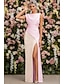 Fourreau Colonne Longueur au sol Robe d'invité de mariage Robe de Cérémonie Robe de soirée Robe de Mère de Mariée Sans manches Col Bateau Élégant Formel Satin Pailleté avec Paillettes