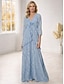 Robe A-Ligne Longueur Plancher Robe de Promo Robe de Fête Robe Cocktail Robe Mère de la Mariée Manches Mi-Longues Col en V Élégante Vintage Fête avec Sequin