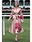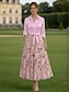 Ligne A Longueur thé Robe de Soirée Robe de Cocktail Robe d'invité de mariage Robe de Mère de Mariée Demi Manches Revers Élégant Kentucky Derby Satin avec Imprimé floral