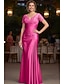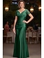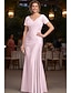 Fourreau Colonne Longueur au sol Robe d'invité de mariage Robe de Cérémonie Robe de soirée Robe de Mère de Mariée Manche Courte Col en V Élégant Formel Satin avec Dentelle Plis Froncé
