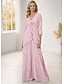 Ligne A Longueur au sol Robe d'invité de mariage Robe de Cérémonie Robe Évasée Robe de Mère de Mariée Manche 3/4 Col en V Élégant ancien Pastel Formel Chiffon Jacquard avec Fleurs 3D Volants