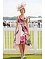 Ligne A Longueur thé Robe de Derby Robe de Mère de Mariée Sans manches Col en V Élégant ancien Kentucky Derby Satin avec Fleur Imprimé