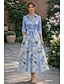 Ligne A Longueur thé Robe de Cocktail Robe d'invité de mariage Robe de Mère de Mariée Manche 3/4 Col en V Élégant Simple Occasionnel Formel Satin Extensible avec Plis Imprimé
