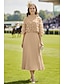 Ligne A Robe Longueur cheville Longueur thé Robe de Cocktail Robe d'invité de mariage Robe de Mère de Mariée Manche Courte Col en V Élégant Occasionnel Pastel Formel Jacquard avec Noeud(s)