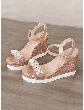 sandales compensées argentées pour femmes avec ornements en perles et bride à la cheville, chaussures à plateforme élégantes pour mariages, fêtes et occasions spéciales