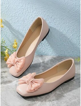 Ballerines roses à nœud pour femme, élégantes chaussures décontractées à bout carré, parfaites au quotidien, en voyage ou au travail. &loisirs du week-end