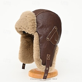 Homme Trappeur Chapeaux d'Hiver Noir Kaki faux cuir Toison Mode Moderne Contemporain Tenue quotidienne Date Couleur Unie / Unie Chaleur Thermique Coupe-vent
