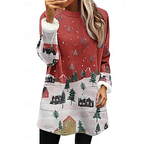 Sweatshirt Pullover Femmes Noël Père Noël Flocon de Neige Claus Décontracté Manches Longues Col Rond Longs Tops De Rue Fête Imprimé Poche Blanc Vin Rouge Rouge Blanc Automne Hiver