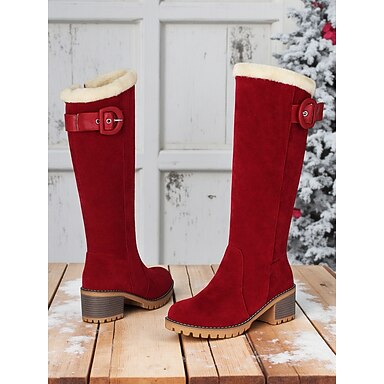 Bottes rouges pour femmes, coupe large, doublure en fausse fourrure – idéales pour les activités de plein air, les randonnées hivernales, les fêtes de Noël et les aventures enneigées.