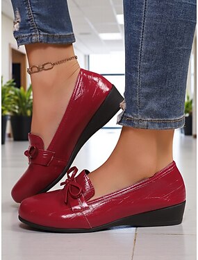 Ballerines en cuir verni pour femme avec nœud et détails en strass – ballerines classiques à enfiler pour femmes adultes, parfaites pour le bureau, les courses quotidiennes, les dîners et les réunions de vacances