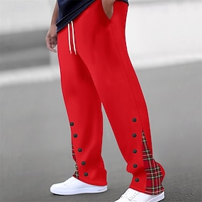 Homme Joggings Pantalons Pantalon de survêtement droit Cordon de serrage Avec Poches Taille Élastique Bloc de Couleur Drapeau national Confort Noël Sport en Plein Air Mode Occasionnel Noir Rouge
