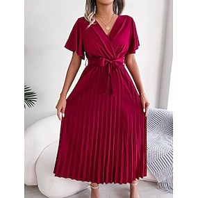 Femmes Robe Midi Robe Décontractée Robe trapèze Élégant Basique Occasionnel Quotidien Vacances Coupe régulière Uni Manche Courte Col en V Rouge Vert Été Printemps