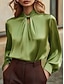 Femmes Elegant Habillé Satin Chemisier Couleur Unie Basique Occasionnel manche longue Manches Bouffantes Asymétrique Hauts Réguliers Travail Quotidien Fête Froncé Patchwork Blanche Vert Beige