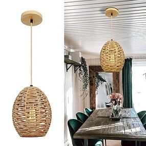 Lampe à suspension en rotin créative à la main, lampe à suspension rétro de 7,28 pouces, lampe suspendue tissée, abat-jour en osier, luminaire suspendu pour table à manger, restaurant 110-240v
