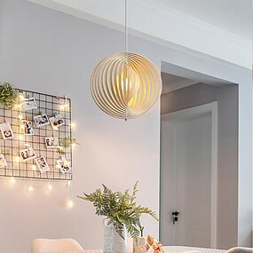 Lustre LED , Lanterne suspendue design style artistique en bois clair , inspiré de la nature adapté à la cuisine bar cafétéria , blanc chaud + blanc + blanc froid, 40/50/60 cm 110-240 v