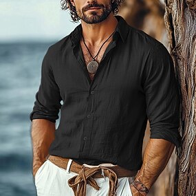 Homme Chemise Chemise Lin Chemisette Chemise d'été Tenues de plage Chemise boutonnée Plein Vacances Curise Noir Blanche Rose Claire Bleu manche longue Revers Printemps été Vêtement Tenue
