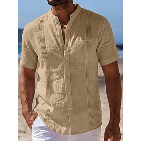 Homme Chemise Chemise en lin Chemise Guayabera Chemise popover Chemise d'été Tenue de plage Uni Vacances Croisière Blanche Bleu Roi Kaki Bleu clair Manche Courte Col Été Vêtement Tenue