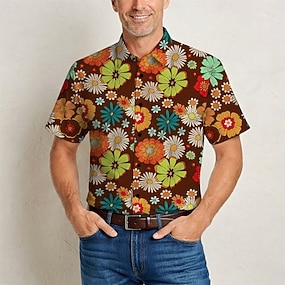 Rétro Vintage Hippie Années 1970 Chemise Manches courtes Hippie Fleuri Rétro Déguisement Homme Festival de Musique Soirée Tenue quotidienne Adulte Chemise Printemps & Été