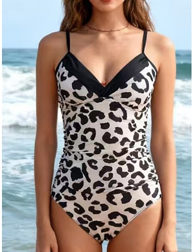 Femmes Maillots de Bain Une Pièce Monokini Maillot de bain Contrôle du ventre Taille haute Mince Dos nu Vacances Tenues de plage Léopard Col en V Sans manches Maillots de bain