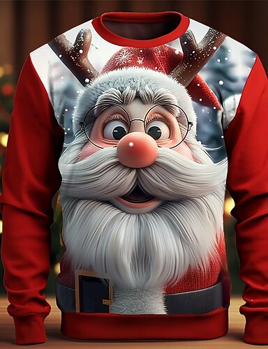 Noël Homme Impression 3D 3D Dessin Animé 3D Sweats Sweat-shirt Sweat shirt manche longue Sweat-shirt Col Ras du Cou 3D Marrant 3D effet Noël Vacances Soirée Col ras du cou Impression 3D 3D Hiver