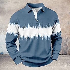 Homme Bandes verticales Chemises Polo Gaufre manche longue Polos Revers Vêtements de sport Occasionnel École Athleisure Tenue quotidienne Impression 3D Printemps Automne Bleu Noir Gris