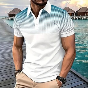 Homme Pois Géométrique Polo Manche Courte Polos Chemises à Col Occasionnel École Extérieur Athleisure Tenue quotidienne Impression 3D Été Bleu Clair-Blanc