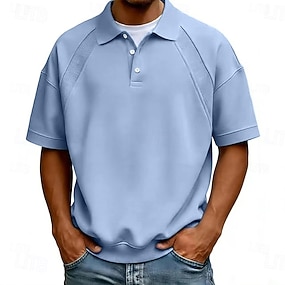 Homme Polo Occasionnel Affaires Col Rabattu Manche Courte Mode Basique Uni Boutons Été Printemps Bleu Blanche bleu marine Marron Vert Gris Polo