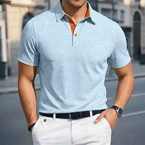 Homme Géométrique Golf Polos de Sport Manche Courte Polos Chemises à Col Occasionnel Athleisure Boutons Été Printemps Bleu Vert Gris