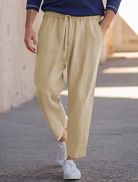 Homme Pantalon en lin Pantalon Poche Cordon Plein Confort Respirable du quotidien Vêtement de rue Rétro Vintage mode Kaki clair Noir Micro-élastique