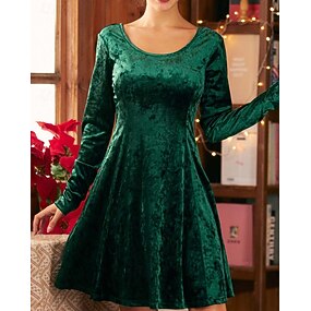 Femmes Mini Robe Robe de Noël Robe en Velours Robe de Soirée Robe de Cocktail Élégant Mode Moderne Soirée Fête Cocktail Coupe régulière Uni manche longue Col ras du cou Vert foncé Automne Hiver