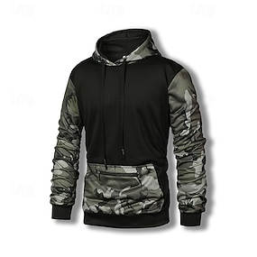 Homme Sweat à capuche Noir Capuche Bloc de couleur Camouflage Patchwork Poche Sport & Loisir du quotidien Vacances Vêtement de rue basique Décontractées Printemps & Automne Vêtement Tenue Pulls