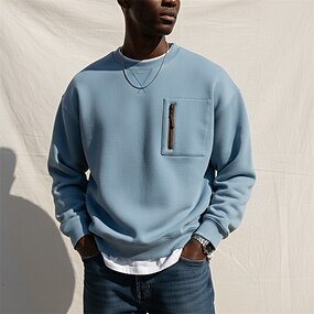 Homme Sweat-shirt Sweat à capuche Pull Bleu Vert Gris Col ras du cou Uni Patchwork Avec Poches Occasionnel Quotidien Sport & Loisir Streetwear Frais Vêtements de sport Printemps & Automne Vêtement