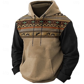 Homme Folk Sweat à capuche Sweats à capuche Sweatshirt Ethnique Occasionnel manche longue À capuche Fête Vêtements de rue Marron Imprimé Poche Avant Printemps & Automne Designer S M L XL XXL XXXL