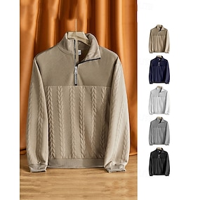 Homme Sweat-shirt Sweat-shirt quart de fermeture éclair Noir Blanche Vin Vert Véronèse Kaki Demi-zip Uni Jacquard A côtes Quart de zip Texturé Sport & Loisir Quotidien Fête Polyester Streetwear