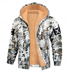 Homme Camouflage Polaire Sweat à capuche Veste Sweatshirt Mode Frais Quotidien Vintage Rétro À capuche Extérieur Chasse Marron Kaki Vert Véronèse Fermeture éclair Avec Poches Automne Hiver Designer S