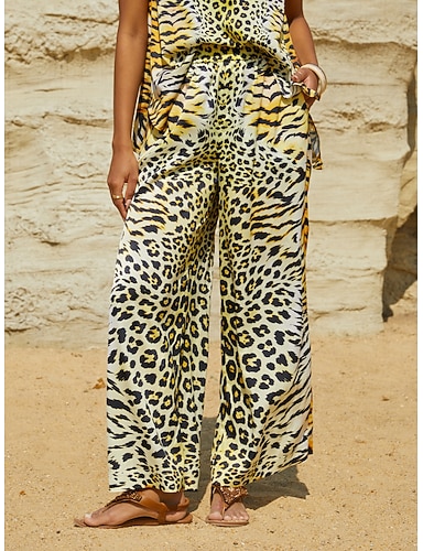 Pantalon décontracté ample en satin à jambe large pour les vacances, imprimé artistique/rétro