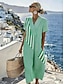 Robe midi en coton et lin pour femme, robe d'été trapèze, robe de vacances, robe de soirée, robe décontractée pour le bureau, la plage, coupe ample, manches courtes, col en V, bleu clair, noir, vert