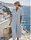 Femmes Robe Midi Robe fourreau Vacances Anniversaire Plage Soirée Sortir Coupe régulière Couleur Unie Manche Courte Col en V Marron foncé Vert foncé Bleu marine Rouge Été Printemps