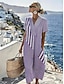 Robe Maxi Femme Lin Comme Respirant Léger Robe d'Été Robe Shift Décontractée Fête Vacances Ajustement Normal Floral Manches Longues Col V Blanc Rose Marron Gris Été Printemps