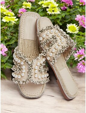 Sandales à enfiler perlées pour femmes avec des accents de pierres précieuses colorées, parfaites pour les journées à la plage et les sorties estivales décontractées