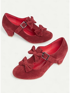 talons mary jane vintage pour femmes avec décoration en nœud papillon – chaussures à talon moyen épais en daim rouge pour événements formels