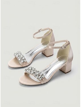 Sandales à talons compensés en strass couleur chair pour femme - élégantes chaussures de cocktail à bride cheville