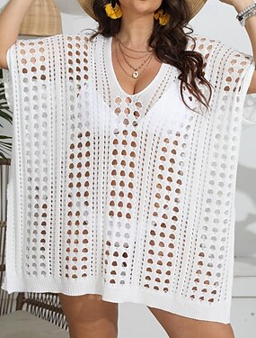 Femmes Maillots de Bain Vêtement couvrant Robe de Bain Maillot de bain Découpé Frange Vacances Tenues de plage Couleur Unie Épaules Dénudées Manches courtes Maillots de bain