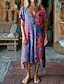 Femmes Robe Midi Robe bohème Mélange de lin Robe fourreau Robe Décontractée Mode Moderne Quotidien Plage Week-end Coupe régulière Teinture par nouage Manche Courte Col en V Bleu Été