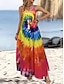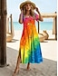 Femmes Robe Maxi Robe Décontractée Robe trapèze Robe Imprimée Mode Moderne Extérieur Plage Vacances Coupe régulière Teinture par nouage Manche Courte Col en V Arc-en-ciel Été Printemps