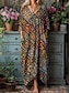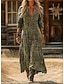 Femmes Robe Maxi Robe bohème Robe Décontractée Robe Imprimée ancien Extérieur Vacances Week-end Coupe Ample Fleuri Graphique Teinture par nouage manche longue Col en V Vert foncé Été Printemps Automne