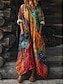 Femmes Robe maxi Robe bohème Robe Décontractée Robe Imprimée ancien Extérieur Vacances Week-end Coupe Ample Fleuri Graphique Teinture par nouage manche longue Col en V Bleu Violet Vert Été Printemps